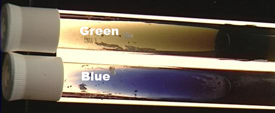 The results of the citrate test on colony type 2 from the MacConkey agar plate are shown in the tube on the TOP. Some of the colony was streaked onto the surface of a Simon's citrate tube and incubated at 37C overnight.